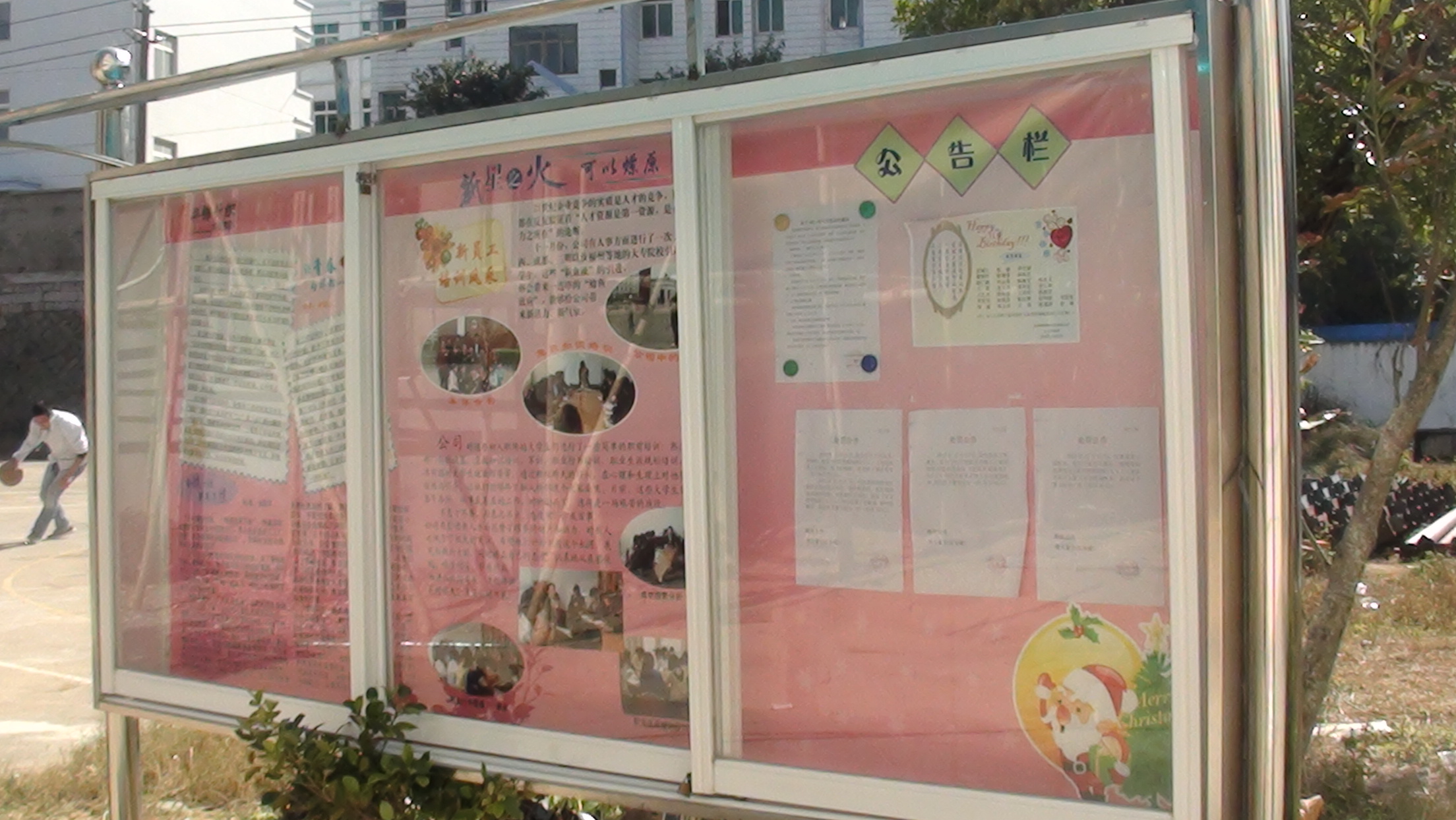 宣传栏是企业文化的一部分,它能促进企业文化建设,如:共同价值观和行为方式的形成,企业道德、企业精神和企业理念的宣传以及企业和谐氛围的创建等等。宣传栏虽小,但它可涉及企业战略、人才、制度、规范、生产、营销、产品、品牌、公关宣传、形象设计等各个方面。 2010年11月,公司开始了企业文化宣传栏的建设工作,一个月更换一期。 其内容主要涵盖了企业新闻、优秀员工风采、智慧小故事及温馨小贴士等,为员工工作之余提供了生活的调剂,力求贴近员工、关爱员工,营造和谐的企业氛围。